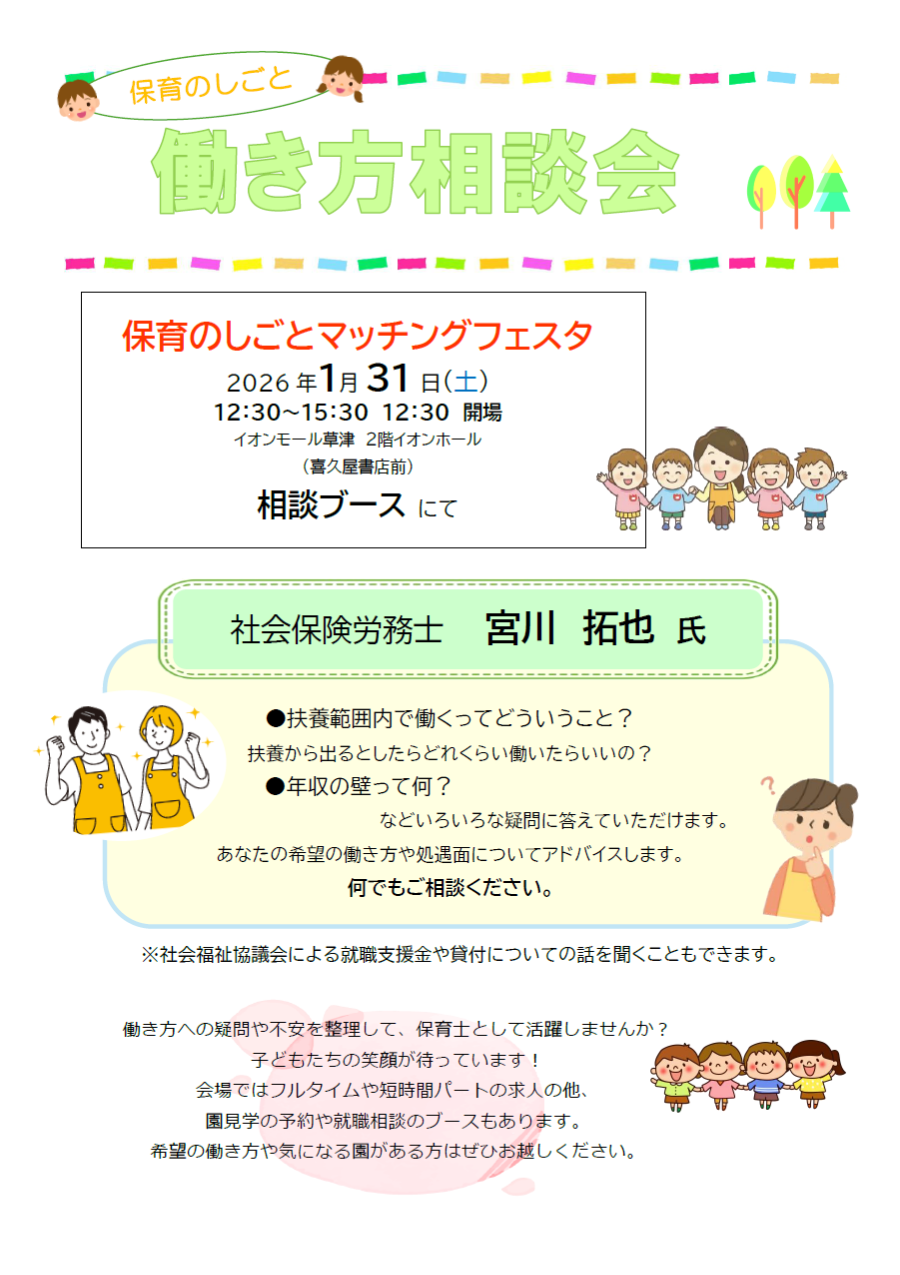 ※当日は、保育施設のブース出展はありませんので、当センターの職員が対応いたします!