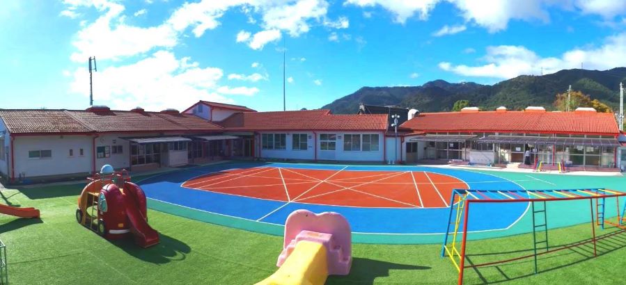 園舎は明るい平屋で、広い園庭には楽しい遊具を設置して、こども達が伸び伸びと成長出来るよう保育の充実に取り組んでいます。