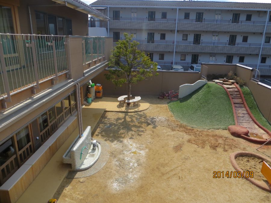 閑静な市街地の中心に位置し、敷地は少し狭いですが2階建ての園舎で、1階は幼児クラス、2階は乳児クラスになります。園庭は移動式遊具(うんてい・鉄棒等)を使いながら広く使える様に工夫をしたり、向かいには児童公園もあります。