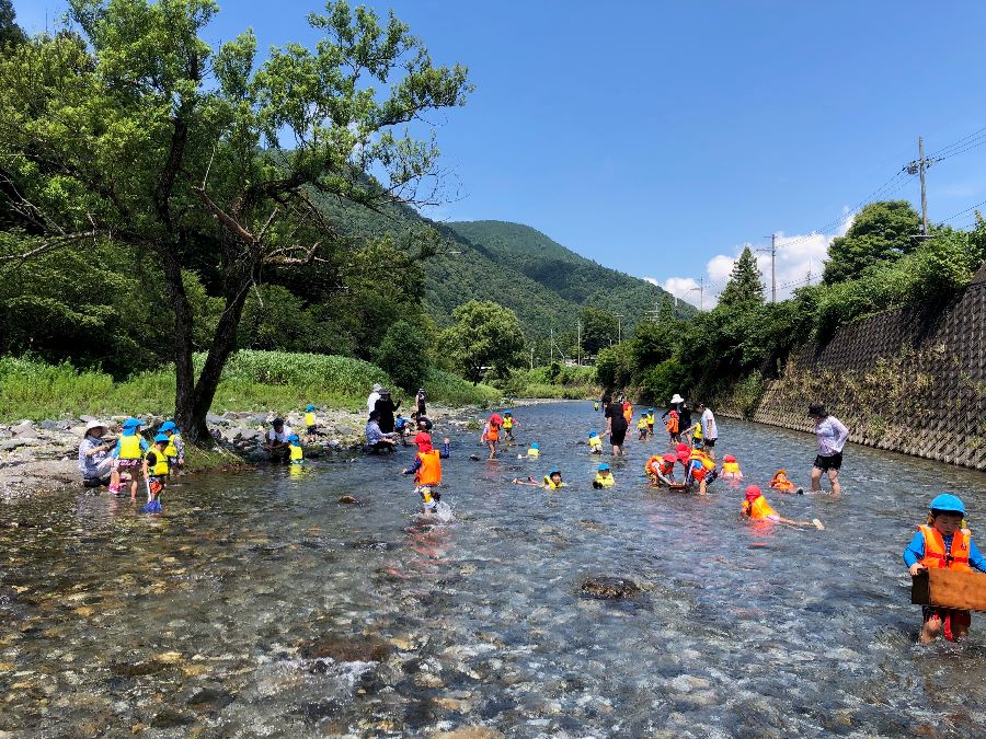 伊吹山を仰ぎ、天野川の流れる自然豊かな環境にあるこども園です。