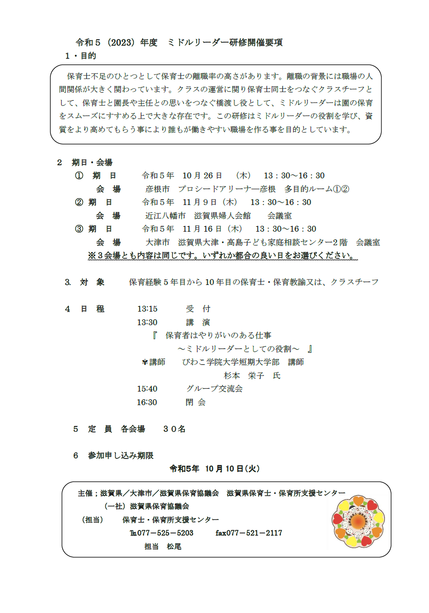 ミドルリーダー研修 開催のお知らせ