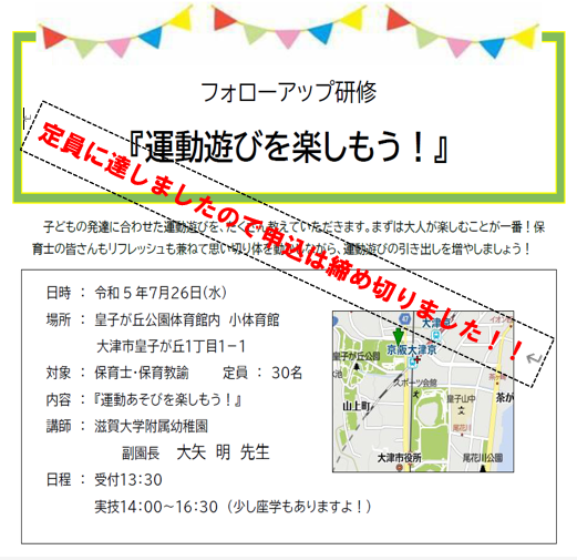 保育士・保育教諭フォローアップ研修のお知らせ 「運動あそびを楽しもう!」