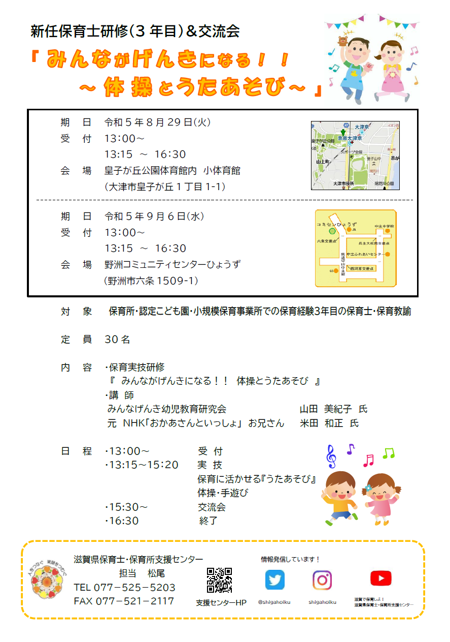 新任保育士(3年目)研修&交流会開催のお知らせ 「体操とうたあそび」