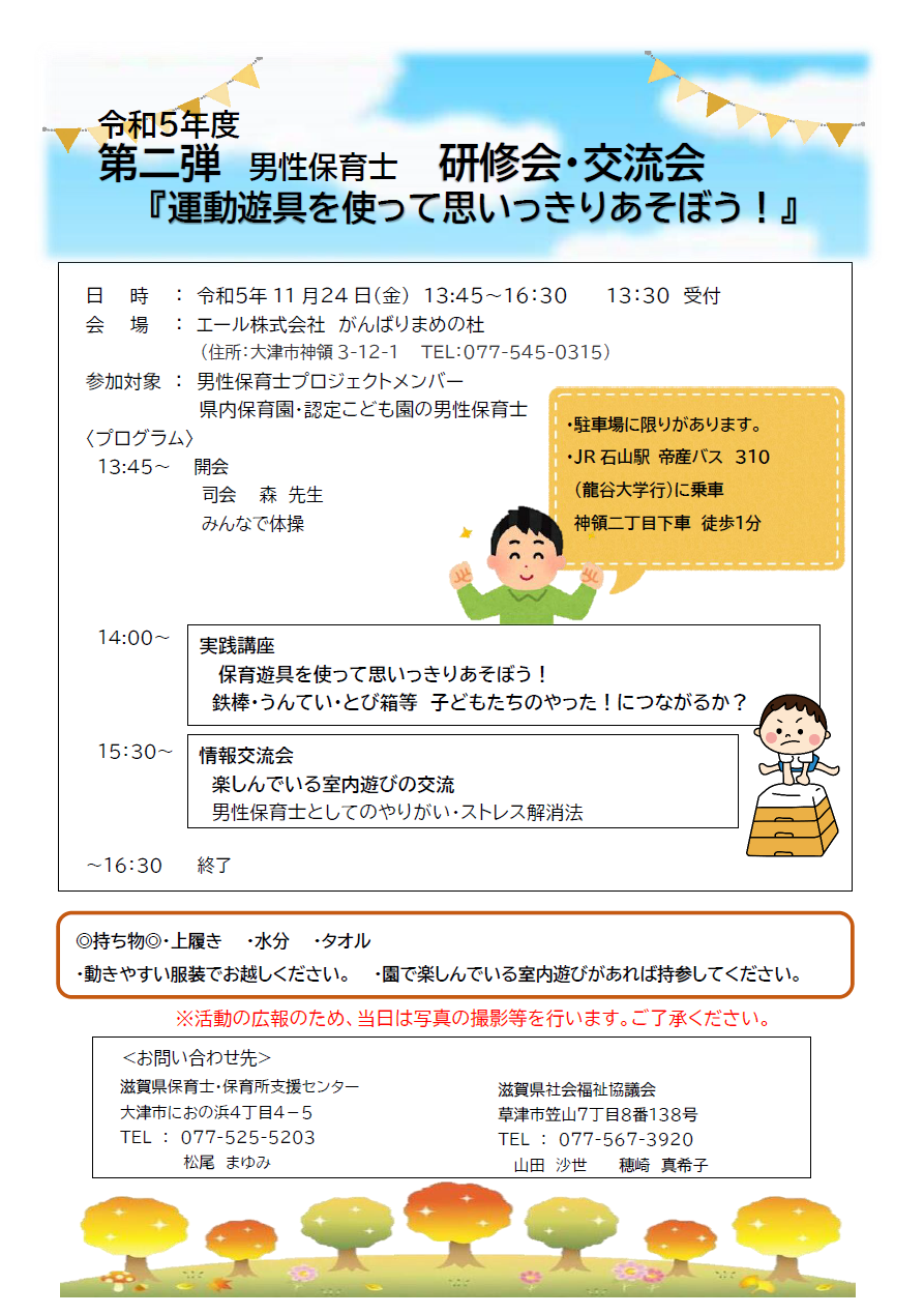 "男性保育士"運動あそび研修会&交流会の開催のお知らせ