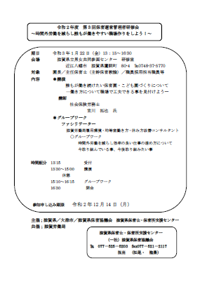 ★より良く働きたい保育職場環境を作り出すため「保育運営管理者研修会」を開催いたします。